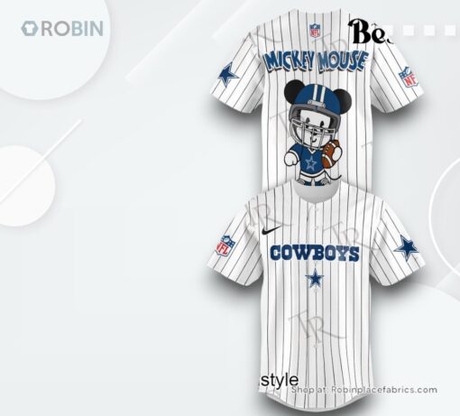Special Mickey Mouse Design Dallas Cowboys Baseball Jersey Shirt Style features