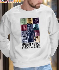 The Spider Verse The Eras Tour Shirt is a must-have for any Spider-Man fan. Featuring vibrant colors and eye-catching graphics, this shirt pays homage to the different eras of the Spider-Verse. The design showcases iconic characters and symbols from various storylines, making it a unique and nostalgic piece for fans of the beloved superhero franchise. The shirt is made from high-quality material, ensuring both comfort and style for the wearer. Show off your love for Spider-Man with this striking and memorable piece of merchandise.