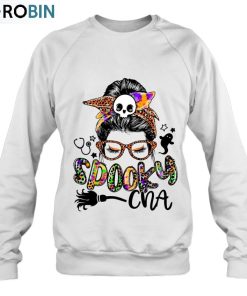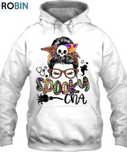 Spooky Cna Messy Bun Women Funny Halloween Unisex Shirt details