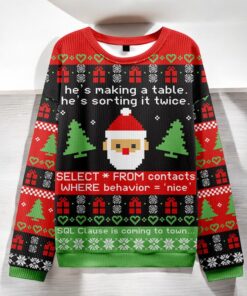 Get ready to sleigh the holiday season with a sweater that brings humor and style together with database charm! This festive knit doesn’t just whisper holiday spirit—it shouts it with SQL-enthusiast flair. Perfect for holiday gatherings or your office’s ugly sweater competition, this design promises to spark conversations among tech lovers and holiday enthusiasts alike. Embrace the geek chic aesthetic and spread seasonal cheer with a unique twist that combines code and Christmas joy!