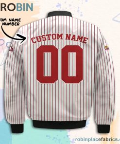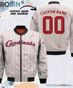 St Louis Cardinals MLB Uniform Stripes Custom Name Number Leather Bomber Jacket imamges
