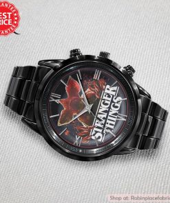 The Black Stainless Steel Watch from the Stanger Things collection exudes sleek and modern sophistication. Its all-black design adds a touch of edginess to any outfit, making it a versatile accessory for both casual and formal occasions. The durable stainless steel construction ensures longevity and durability, while the bold black dial and markers offer a striking contrast. With its minimalist yet stylish design, this watch is perfect for those who appreciate a timeless and understated aesthetic.