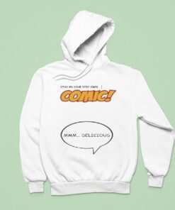 Bold self-expression finds a lively voice in this comic shirt. The design captures a playful spirit with a crisp comic book panel declaring STAR IN YOUR VERY OWN… followed by a commanding COMIC! rendered in a vibrant orange gradient. This headline bursts with energy, its bold, uppercase typeface instantly evoking classic pop art flair. Complementing it, a speech bubble bubbles with the cheeky phrase MMM… DELICIOUS, written in a relaxed, handwritten style that adds a casual, fun contrast. Every line and color choice invites a lighthearted attitude, perfect for those who appreciate a wink of nostalgia paired with modern wit. It appeals to anyone who enjoys wearing humor on their sleeve—literal or figurative—and who likes to signal a connection to comic culture without taking themselves too seriously. This is the kind of shirt that sparks conversation among friends or fans sharing an appreciation for graphic art and playful design. Whether worn during a relaxed weekend outing or tucked into informal settings, its retro vibe and clever typography feel genuinely at home. It also works as a thoughtful gift for people who lean toward whimsical, visually expressive clothing—a nod to their personality as much as their interests. The artistry behind this comic shirt reveals a sense of fun woven into every detail, making it a subtle statement piece for anyone embracing their own colorful story.