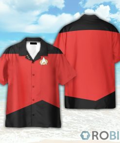 Star Trek Movie The Next Generation Red Uniform Cosplay Costume Hawaiian Shirt features