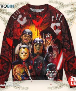 Unleash the dark side of your Halloween wardrobe with a spine-chilling blend of iconic sci-fi and bone-rattling horror! This standout sweater transforms the menacing aura of a certain masked villain into a uniquely stylish statement. Crafted for fans with a macabre sense of humor, this garment seamlessly melds cosiness with a touch of terror. Perfect for festive gatherings or eerie outdoor adventures, it's designed to captivate attention and spark conversation. Feel the force of fashion and fear merge this spooky season with this distinct sweater, a must-have for those who dare to embrace the chilling allure of cinematic legend.