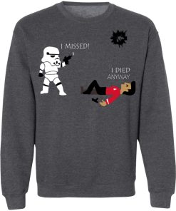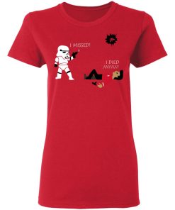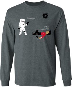 Star Wars Stormtrooper shoots I missed I died anyway shirts. Available in t shirt, long sleeve, tank top, hoodie, sweatshirt and multiple color. If you want in another color please contact us.