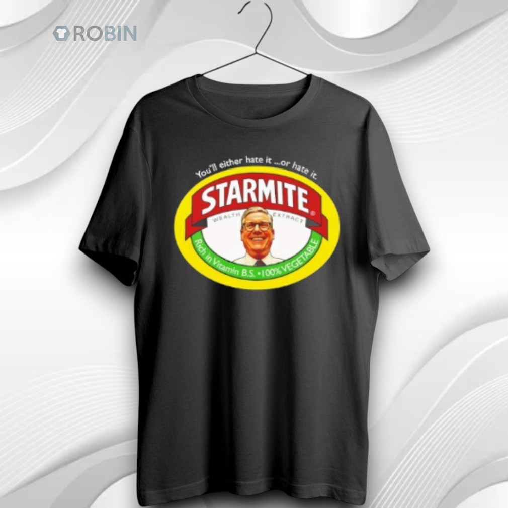 A distinctive taste that nobody asked for. Serve up some fresh satire with the Starmite t-shirt. We’ve replaced the classic yeast spread with a "Wealth Extract" that leaves a bitter aftertaste.