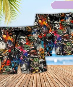 Get ready to hit the beach in style with these eye-catching Star Wars-themed beach shorts! Featuring a highly illogical pattern of vibrant colors and iconic Star Wars characters, these shorts are the perfect gift for any Star Wars fan this holiday season. Made from lightweight and quick-drying material, they are ideal for soaking up the sun or taking a dip in the ocean. Stand out from the crowd and show off your love for the galaxy far, far away with these fun and stylish beach shorts.