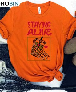 This Staying Alive Coffee Lovers Shirt Unisex Hoodie is perfect for any fan of coffee or skeletons. Featuring a hilarious graphic of a skeleton hand holding a cup of coffee, this hoodie is a great way to show off your passion for coffee in a fun and unique way. The classic crewneck style is comfortable and stylish, and the lightweight, breathable fabric ensures that you stay warm and cozy no matter how cold it gets. If coffee fuels your life, then this hoodie is the perfect way to express that!