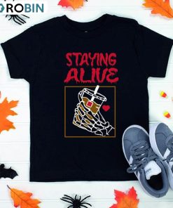 Staying Alive Coffee Lovers Shirt, Funny Skeleton Hand Crewneck Unisex Hoodie details