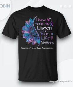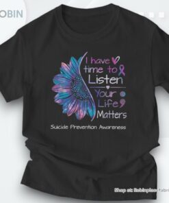 Elevate your style while supporting a vital cause with our uniquely designed sunflower adornment, intertwined with teal and purple ribbons. This striking shirt not only catches the eye with its intricate details and vibrant colors but also represents a strong commitment to suicide prevention awareness. Perfect for sparking conversations and spreading hope, this shirt empowers you to wear your heart on your sleeve—literally. Share the message of strength and solidarity with every step you take.