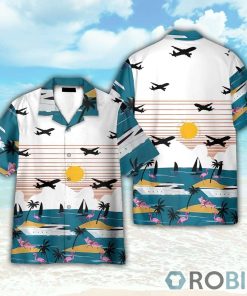 Summer Beach Flamingo And Planes Hawaiian Shirt features