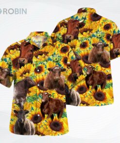 Show off your love for cattle and the islands! This vibrant button-down features beautiful sunflowers and majestic Shorthorn cattle. Perfect for a summer BBQ, a day at the beach, or just relaxing in style. Get yours today and turn heads!