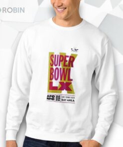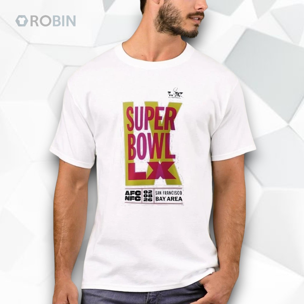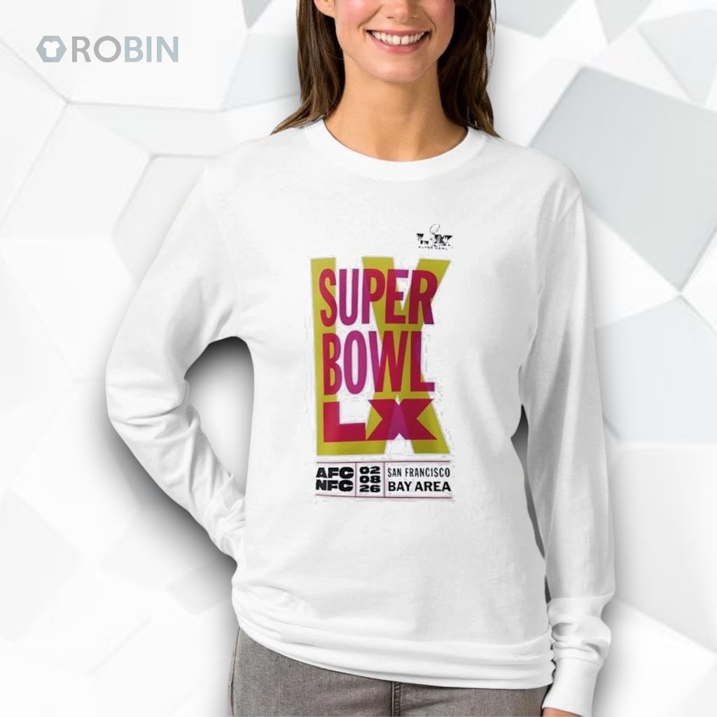 Mark the moment of one of football’s biggest stages with this Super Bowl LX San Francisco 2026 Shirt. Featuring a clean, vertical graphic layout, the design highlights the championship matchup and the Bay Area setting in a bold, modern style.