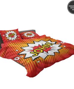 Superhero Theme Comic Personalized Custom Bedding Set – duvet cover and pillow case.