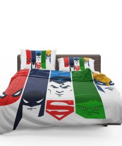 Superheroes Spider Man Batman Superman Hulk Wolverine Bedding Set – duvet cover and pillow case.