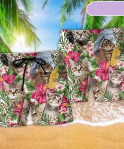Tabby Cat Tropical Floral Beach Short, Gift for Holiday Summer