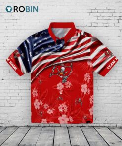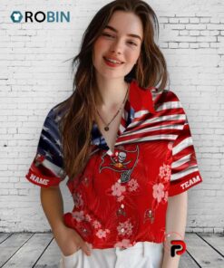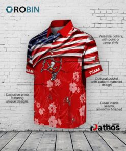 Show your Bucs pride with this vibrant Hawaiian shirt! Rock the red, white, and blue with hibiscus flair. Perfect for game day or relaxing in style. A fun twist on buccaneers uniforms! Get yours today!
