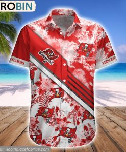 This vibrant and eye-catching shirt features a beautifully detailed watercolor pattern of hibiscus flowers in a Hawaiian style. The mix of pinks, oranges, and greens creates a striking and tropical look. With its relaxed fit and comfortable fabric, this shirt is perfect for casual outings or summer parties. The unique design and bold colors make it a standout piece that will surely turn heads and showcase your love for the Tampa Bay Buccaneers.