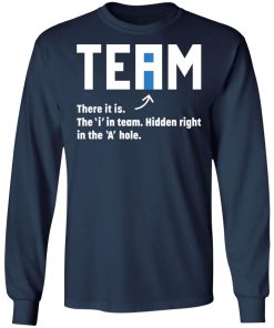 Team There It Is The I In Team Hidden Right In The A Hole Shirt. Available in t shirt, long sleeve, tank top, hoodie, sweatshirt and multiple color. If you want in another color please contact us. Quality control before delivery. Print: Digital printing, colors won’t fade or peel. The design is printed with new age printing technology. It is printed with a water – soluble and eco – friendly ink. Treat yourself, or make this shirt the perfect gift n birthdays, anniversaries, holidays, or give a gift to friend, yourself, or family, or for no reason at all.