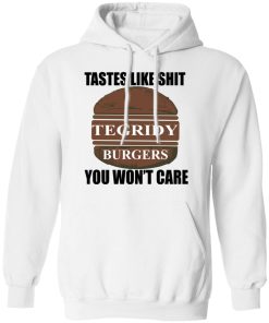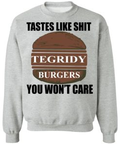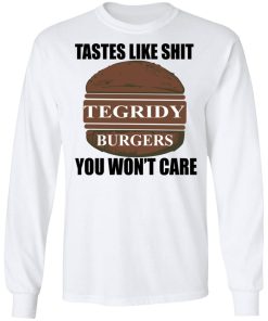 Tegridy Burgers Tastes Like Shit You Wont Care shirts. Available in t shirt, long sleeve, tank top, hoodie, sweatshirt and multiple color. If you want in another color please contact us.