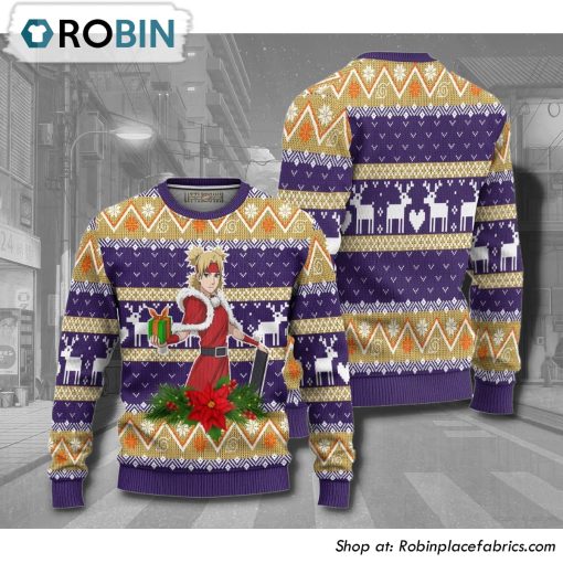 This Christmas ugly sweater is a stylish way to show off your love of Temari Naruto Anime. Featuring the iconic characters from the beloved show, everyone will recognise your passion for the series. The sweate comes in a range of unisex sizes, and should fit a majority of body types. Wearing it will bring all the warmth and joy of Christmas this year! It's a timeless piece of clothing that will be enjoyed by both young and old alike. Boost your Christmas fashion game and become a trendsetter in your social circles with this stylish piece of clothing. The best part is, you don't have to worry about being embarrassed or uncomfortable, as you know you're dressed in something that totally reflects your taste.