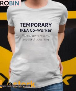 The Temporary Ikea CoWorker Please Dont Ask Me Any Hard Questions Shirt is perfect for those who want to have a comfortable and stylish outfit at work. It is made of high-quality materials that ensures durability and comfort. With its simple design, this shirt can easily be paired with any bottoms for a chic look. It is the ideal choice for a temporary coworker who wants to make a good impression without putting in too much effort in their outfit.