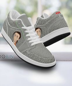 These unique and stylish low Jordan sneaker shoes are inspired by the hit anime, Tengen Toppa Gurren Lagann. The design features JD Low Rossiu in his signature style, complete with his signature glasses and iconic spiky hair on both sides of the shoes. The shoes are designed to be extremely lightweight and feature a low profile sole for a comfortable fit. The shoes feature an all black upper with a mix of lighter shades for the design, giving it a sharp and sleek look. The shoes come with a durable rubber outsole for added traction and durability. Perfect for the anime fan within you, these shoes are sure to turn heads and make your shoe game stand out.
