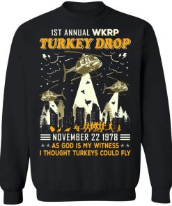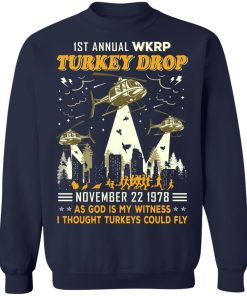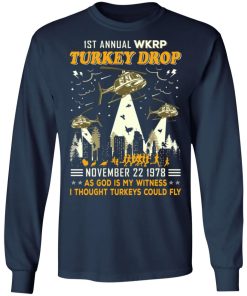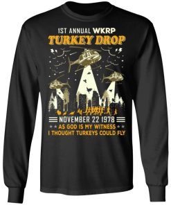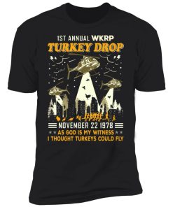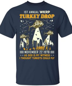 Thanksgiving Day First Annual WKRP Turkey Drop November 22 1978 Shirt. Available in t shirt, long sleeve, tank top, hoodie, sweatshirt and multiple color. If you want in another color please contact us. Quality control before delivery. Print: Digital printing, colors won’t fade or peel. The design is printed with new age printing technology. It is printed with a water – soluble and eco – friendly ink. Treat yourself, or make this shirt the perfect gift n birthdays, anniversaries, holidays, or give a gift to friend, yourself, or family, or for no reason at all.