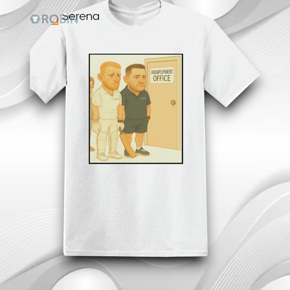 This design uses a clever cartoon scene to turn sports humor into a bold and memorable statement. Featuring two disappointed players waiting outside the “Unemployment Office,” it playfully represents the ups and downs of competition, performance, and fandom.