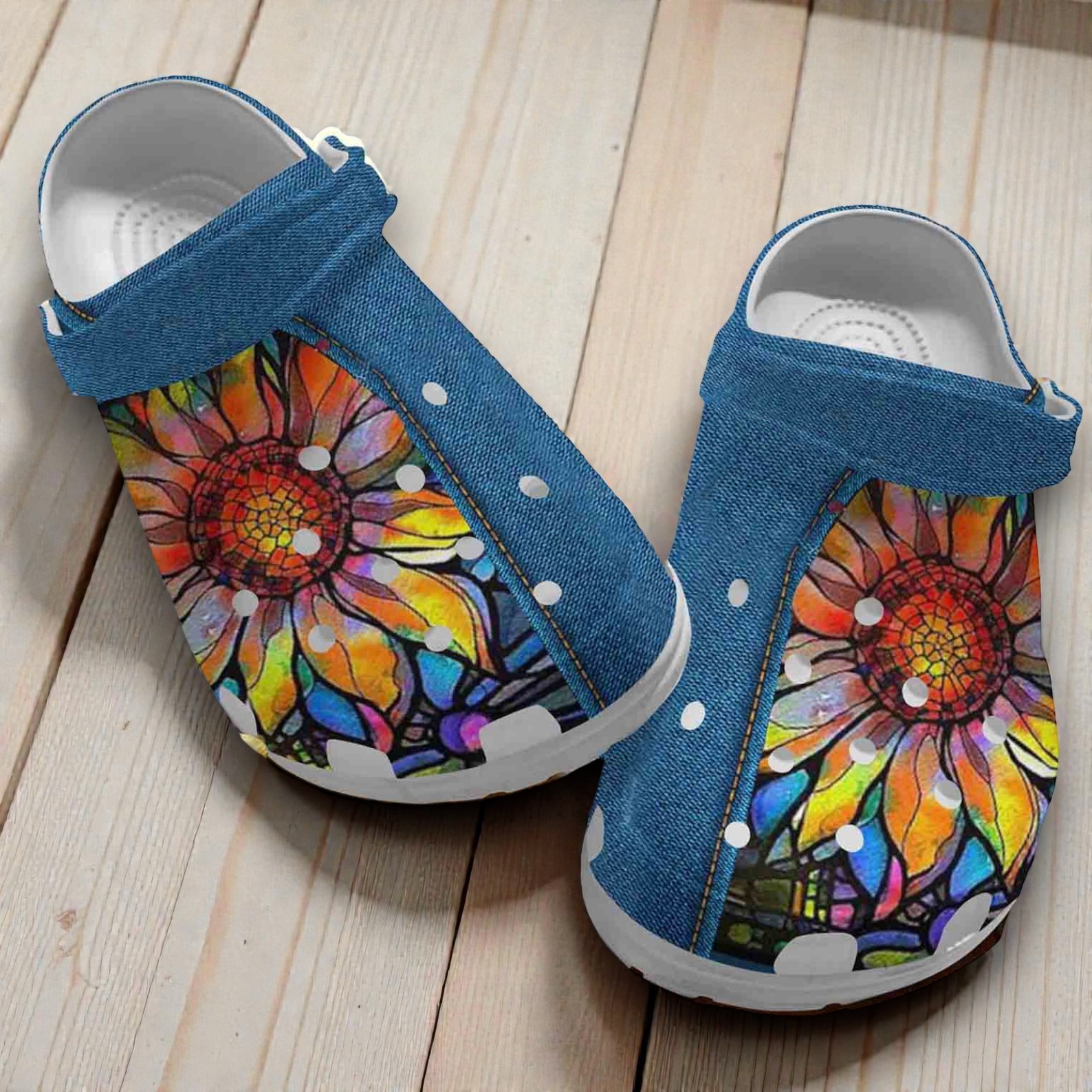On a warm afternoon, the vibrant splash of yellows and greens catches your eye—like a small celebration of nature woven into casual footwear. These shoes bring the sunflower’s cheerful energy to life, each petal radiating a subtle blend of colors that feel both playful and grounded. The familiar silhouette of the clog remains, but it’s transformed by a lively pattern that speaks to those who vibe with a carefree, hippie-inspired outlook. For anyone who cherishes the spirit of the outdoors, or who finds joy in the simple yet striking beauty of a sunflower, these Crocs feel like a natural extension of their identity. They’re not just shoes; they carry a story, a nod to a community that values vibrant self-expression without fuss. The playful design is an effortless way to move through the day with a bit of sunshine at your feet—whether meandering through weekend markets or lounging in a sun-drenched backyard with friends. This look stands apart from typical casual footwear, resonating with those who appreciate a blend of comfort and character. It could easily become a thoughtful gift for a sibling or friend, someone whose quirky charm and love for nature are well known. The Colorful Natural Sunflower Crocs shoes invite effortless style, grounded in a shared feeling of warmth and a touch of whimsy.The Colorful Natural Sunflower Crocs Shoes Men Women   Hippie Style Shoes Crocbland Clog Gifts For Son Daughter