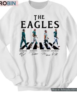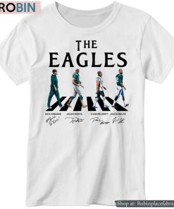 The Eagles shirt showcases the signatures of some of the team’s key players, celebrating their talent and dedication to the game. Fans can proudly wear this shirt as a tribute to their favorite players and show their support for the team. With the iconic eagle logo as a centerpiece, this shirt is a must-have for any Eagles fan looking to represent their team in style.