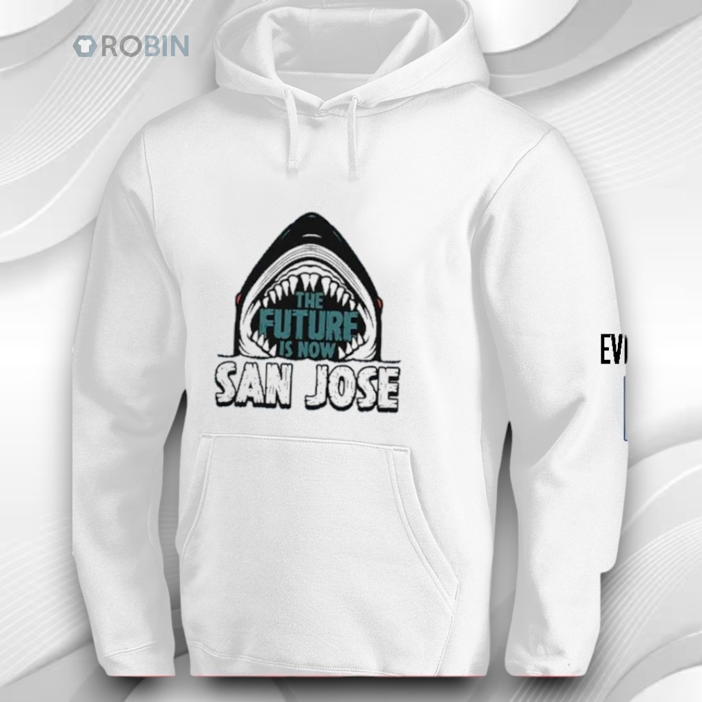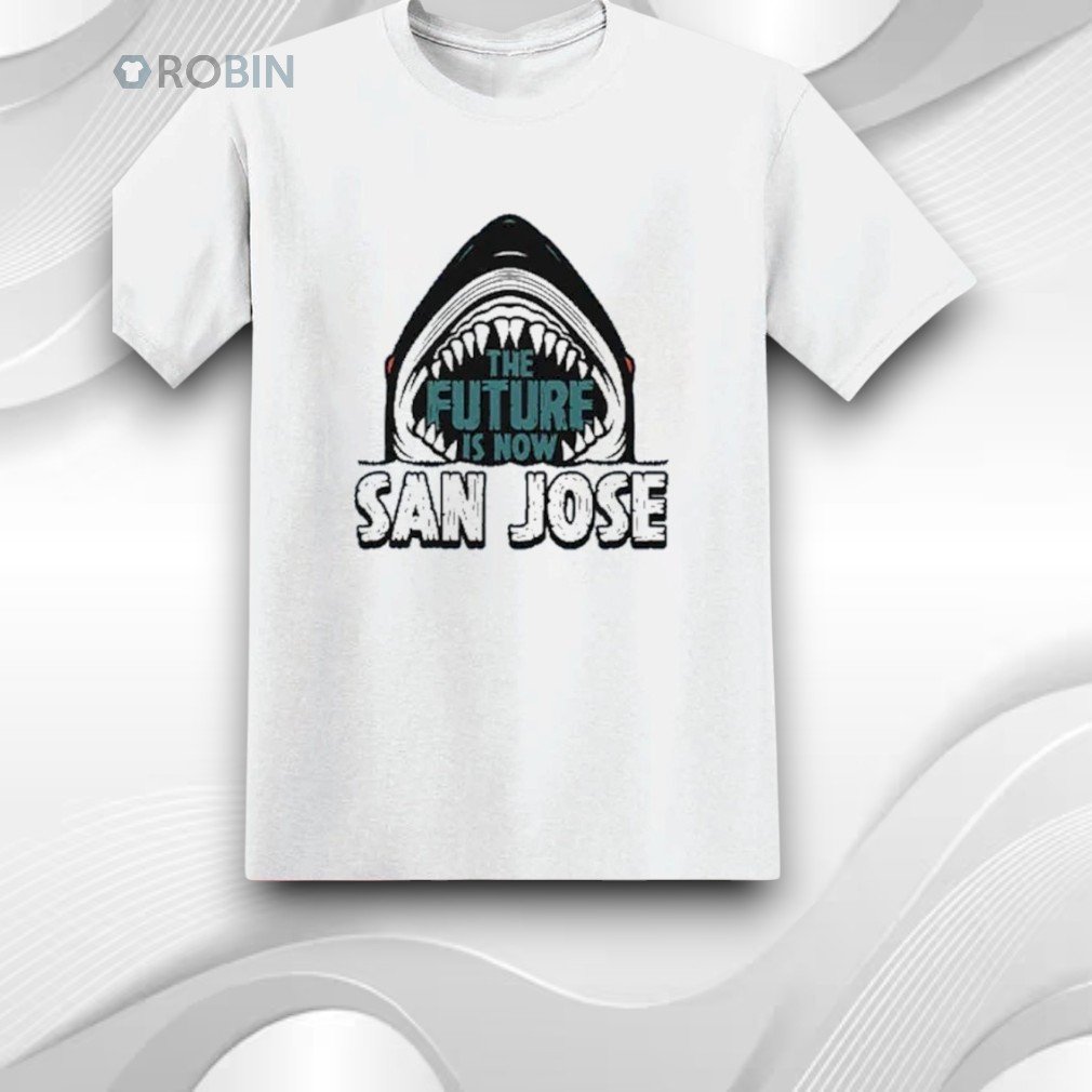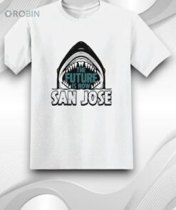 This powerful graphic design features a bold shark mouth with sharp teeth surrounding the phrase “The Future Is Now”, paired with “San Jose” in strong, athletic-style lettering. The artwork delivers a fierce, high-energy vibe that blends sports spirit, city pride, and modern streetwear style.