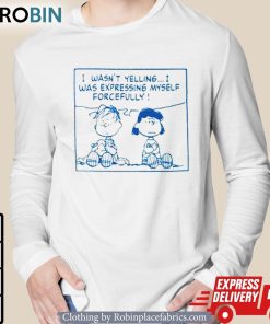 The Peanuts I Wasnt Yelling I Was Expressing Myself Forcefully Shirt reflects the energetic and lively nature of the characters, making it perfect for those who want to make a bold statement with their fashion choices. The design conveys a sense of enthusiasm and excitement, showcasing the characters as they engage in their mischievous antics. Whether you’re wearing this shirt to a casual day out or to a Peanuts-themed event, it is sure to be a hit and bring a smile to the faces of those around you.