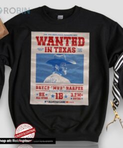 The Philadelphia Phillies Wanted July 16 2024 In Texas Globe Life Field Bryce Mp3 Harper Nl Leading Vote Getter Shirt details