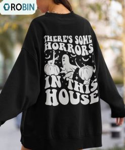 This stylish Theres Some Horrors In This House Cute Shirt Trendy Sweatshirt Unisex Hoodie is sure to be your go-to this season! This fashionable and comfortable hoodie is designed with quality materials, making it an easy choice for any look. The hoodie features a classic black and white unisex design with the quote 'There's Some Horrors In This House' printed in bold text on the front. The hood is lined with soft fabric to keep you cozy and warm during the cold winter months. The fitted cuffs and waistband provide a cozy fit with a defined shape. Additionally, the hoodie has two side pockets that are perfect for holding your phone and keys, making it a practical and fun piece to wear. Make a style statement this season with this fabulous and unique hoodie!