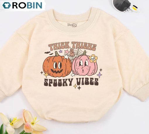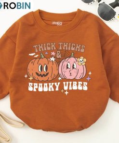 Thick Thighs And Spooky Vibes Shirt, Halloween Funny Sweater Short Sleeve details
