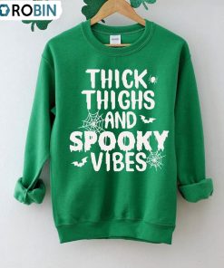 Thick Thighs And Spooky Vibes Shirt, Halloween Funny Sweatshirt Short Sleeve details