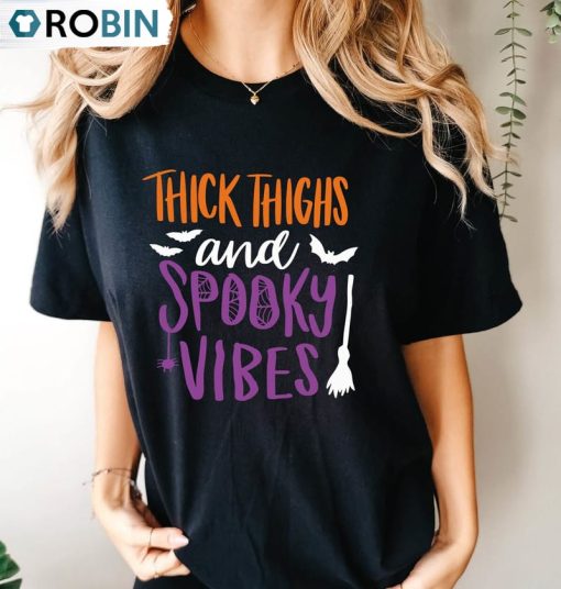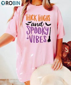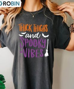 Thick Thighs And Spooky Vibes Shirt, Trendy Halloween Unisex Shirt details