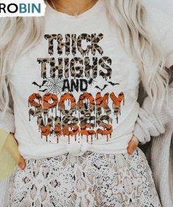 Thick Thighs Spooky Vibes Halloween Shirt, Funny Sweater Short Sleeve details