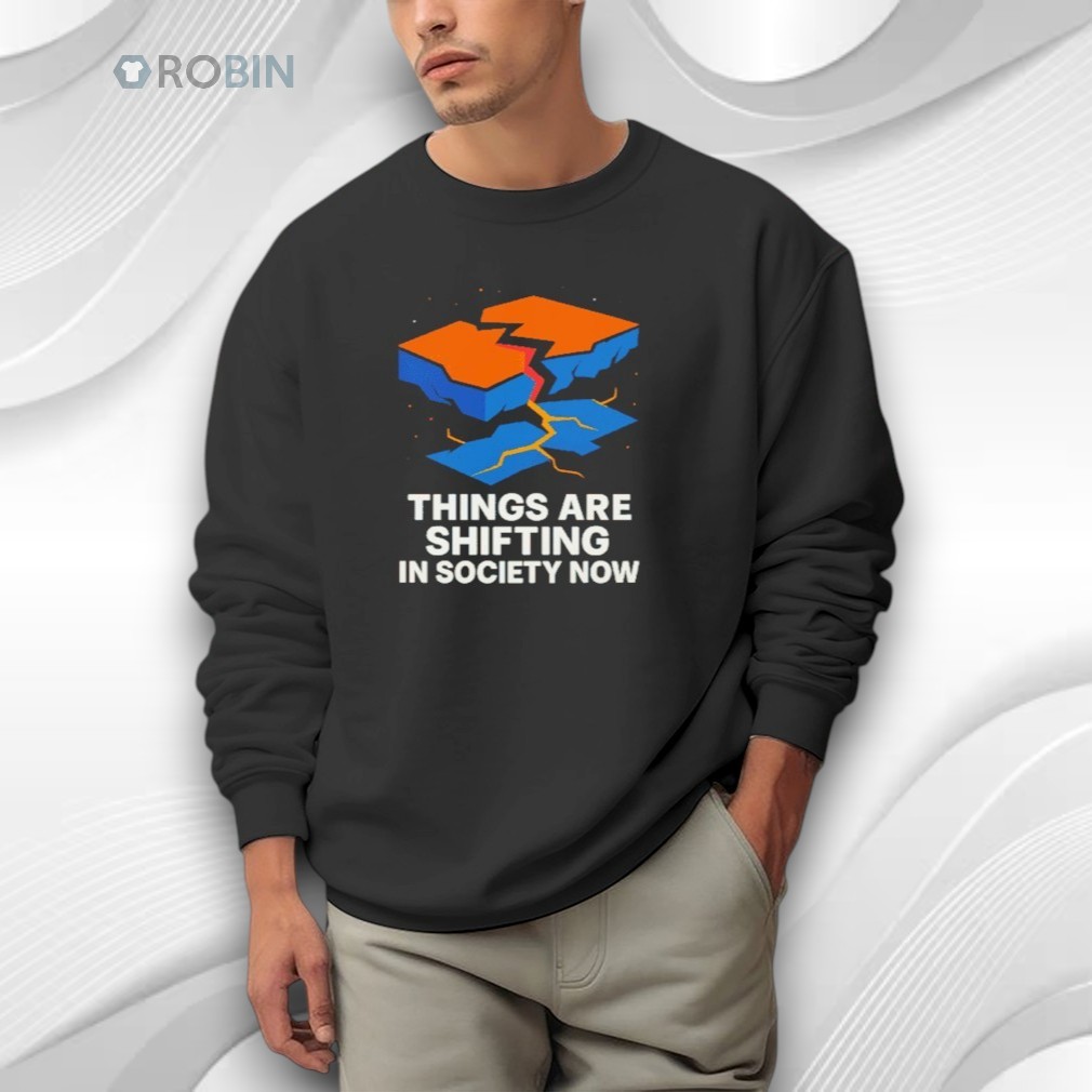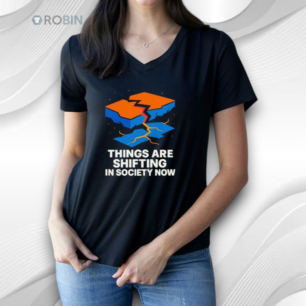 This bold and modern design features a cracked, broken symbol split into orange and blue blocks, representing change, disruption, and transformation. The powerful message “Things Are Shifting in Society Now” speaks to a world in motion, where old systems are breaking and new ideas are emerging.