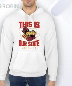 Show off your Cyclones pride with this vibrant design featuring a bold mascot illustration and This Is Our State in striking red and yellow. Perfect for Iowa State fans, it celebrates Ames, IA with a dynamic and spirited look that's sure to stand out. Whether you're at a game or exploring town, this shirt keeps your Cyclone spirit front and center.