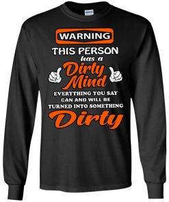 Funny shirt : Warning this pearson has a dirty mind everything you say can and will be turned into something dirty T shirt, Ls, Sweatshirt