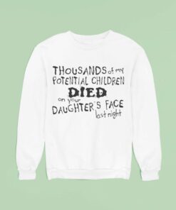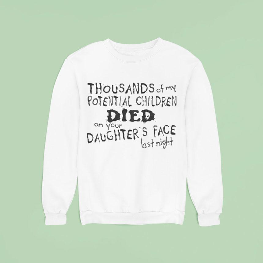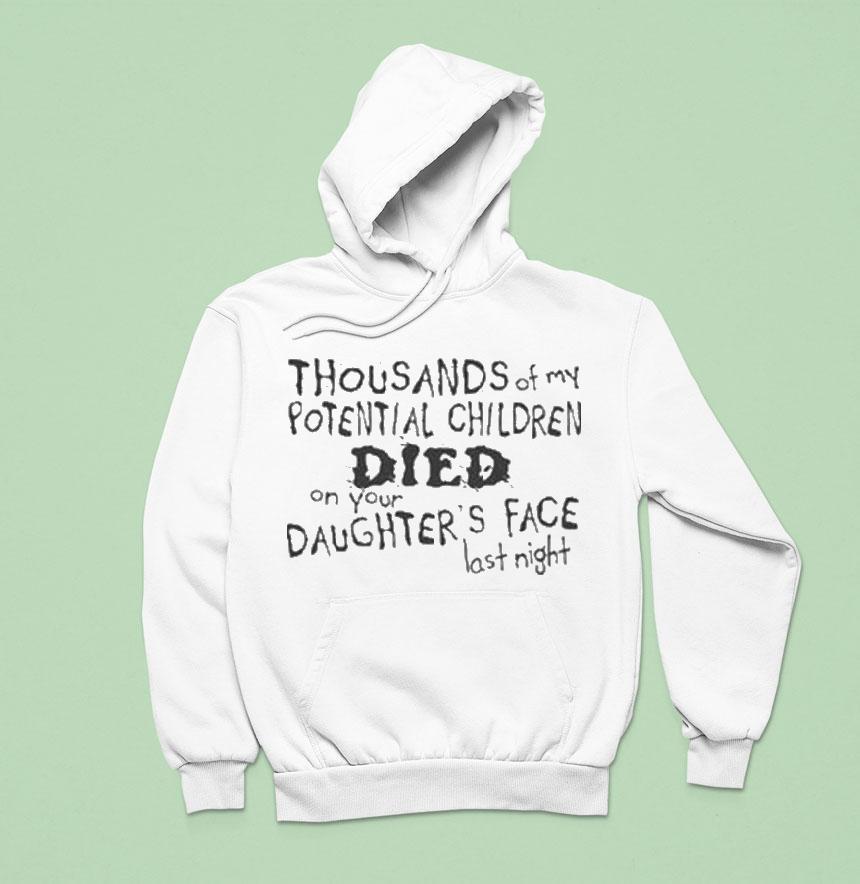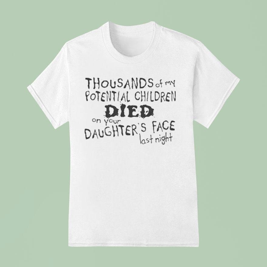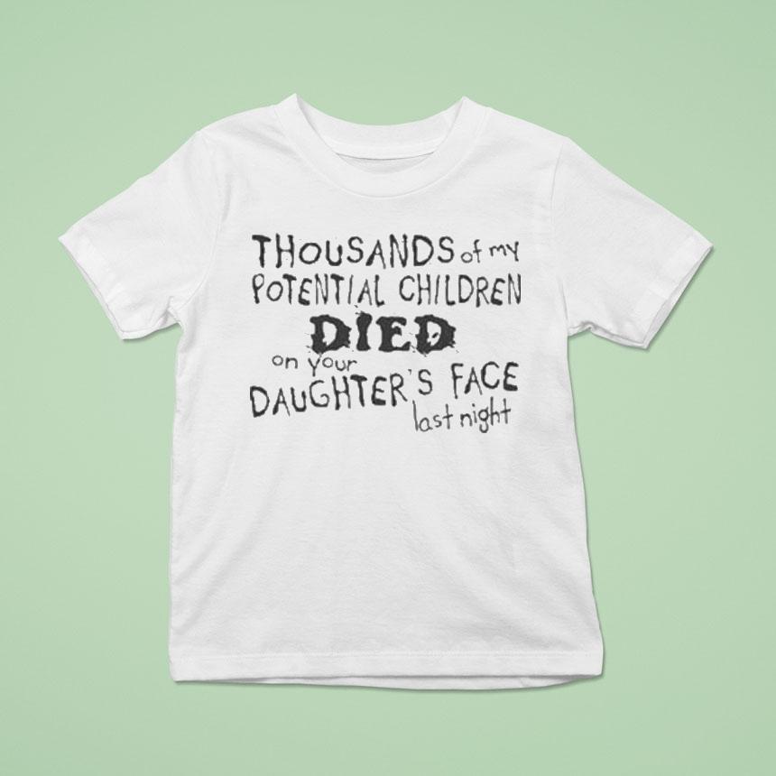 Thousands Of My Potential Children Died On Your Daughter’s Face Last NighUnisex Shirt