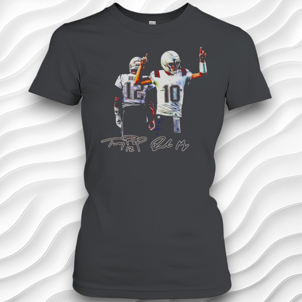 if you’re a Patriots fan or just someone who appreciates football history, this shirt nails it. It’s not just any tee — the dark gray background really makes the design pop. Right there on the front, you’ve got this bold, athletic graphic showing Tom Brady and Deion Branch in action. It’s almost like you’re looking at a cool piece of artwork rather than just fan merch. What really stands out are their signatures, done in that cursive, autograph-style text that makes the whole thing feel way more personal and authentic, like an actual collector’s item. The design captures that energetic vibe you get on game day, with both players depicted in their Patriots jerseys. The colors used in the graphics aren’t just your typical team palette, but a mix of multicolor athletic shades that give it this dynamic, celebratory feel. It’s the kind of shirt that makes you want to wear it when you’re watching a game with friends or hanging out with fellow Patriots supporters. Honestly, anyone who follows the NFL or is into sports memorabilia would really appreciate this. It’s subtle yet bold, so it works great if you want to show some team pride without going over the top. And if you know someone who’s a hardcore Patriots fan with a thing for legendary players, this shirt feels like the kind of gift that’s thoughtful but also totally cool. Perfect for birthdays or even as something to throw on before heading to a game or a watch party. I came across this Tom Brady Deion Branch signatures shirt and was impressed by how well it balances looking like a collector piece while still being ready to wear anytime. It’s a solid pick for anyone who loves the Patriots and wants a little extra something to celebrate two key players in an authentic style.