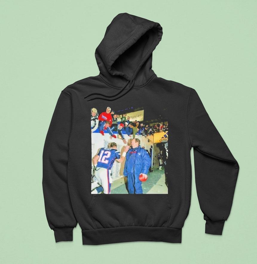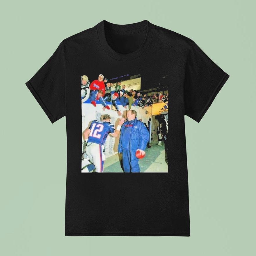 Wearing a shirt like this signals more than just support for a team—it speaks to a shared history and respect for leadership in the game. The design captures a timeless moment, blending a vintage photographic collage of Tom Brady and Bill Belichick on the sidelines of Foxboro. It’s not just two figures standing side by side; the image carries the weight of seasons won and moments that defined an era, showing Brady in his jersey next to Belichick wearing his coaching gear against the backdrop of the stadium. This shirt fits naturally into the wardrobe of someone who finds meaning in quiet confidence and values the nuance of sports legacy. It’s the kind of piece a football enthusiast might wear while catching a game with friends or recalling iconic plays during a casual conversation. There’s an understated sense of nostalgia in the imagery that resonates with those who appreciate how the right combination of leadership and talent shapes a team’s identity. A Tom Brady Bill Belichick shirt like this also makes a thoughtful gift for anyone whose passion for football runs deeper than the season—to those who admire not only the highlights but the stories behind the scenes. It fits into everyday life as a comfortable, durable choice that carries a story on its surface, inviting connection without saying a word.