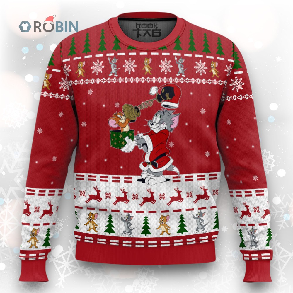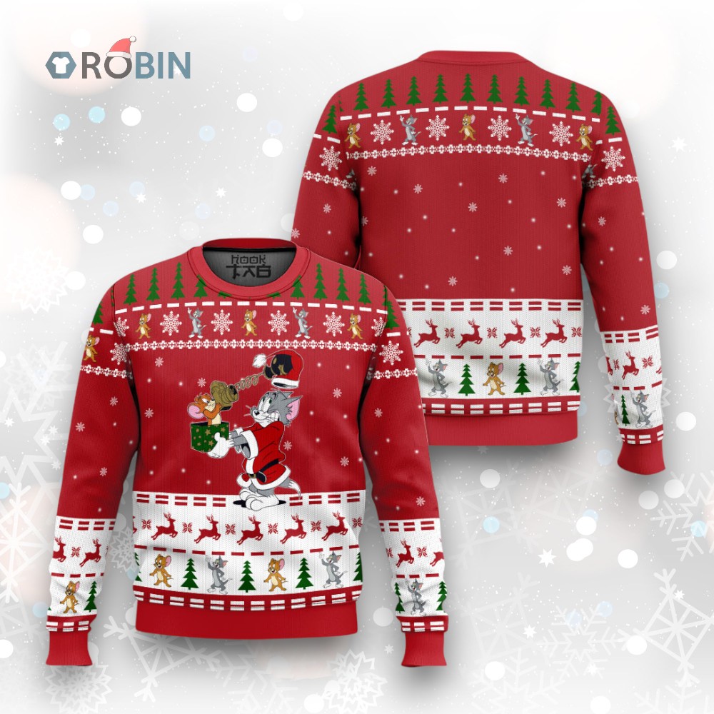 Step into holiday nostalgia with this Tom & Jerry Christmas Sweater! Featuring the iconic duo in a festive chase amidst snowflakes and reindeer, it's a playful nod to classic cartoons. Whether you're snuggling by the fire or laughing at holiday gatherings, this sweater adds a touch of merry mischief. Grab yours today and relive the timeless fun!