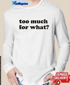 The Too Much For What Shirt is a bold and eye-catching piece of clothing that is sure to make a statement. The shirt features a unique and attention-grabbing design that is both trendy and edgy. With its vibrant colors and expressive graphics, this shirt is perfect for those who want to stand out and make a statement with their style. Made from high-quality materials, the shirt is comfortable to wear and durable enough to last through many wears and washes. Whether you’re hitting the town or just lounging at home, the Too Much For What Shirt is the perfect choice for anyone looking to make a fashion statement.