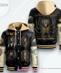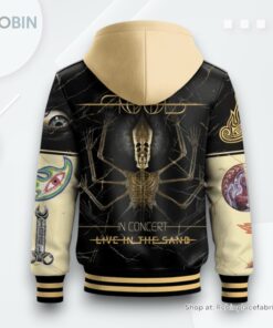 Get ready to rock the dunes! 🔥 Announcing a limited-edition jacket that blends iconic art with premium comfort. Featuring unique design details inspired by the mesmerizing desert show, this hooded varsity is a must-have for any dedicated fan. Pre-order yours now before they're gone! ⏳