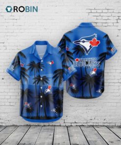 Show your Blue Jays pride with this awesome Hawaiian shirt! Perfect for summer days and game days alike. Features a cool coconut tree design. Grab yours at the blue jays store or online now! Limited quantities available.